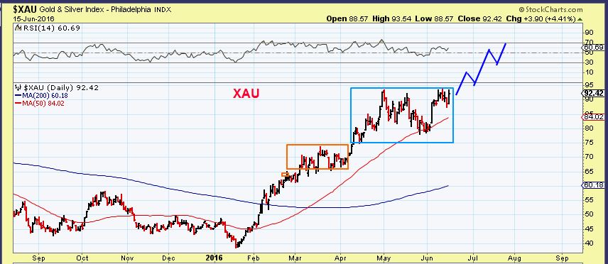 XAU–  These consolidations allow the overbought conditions to relax, they allow sentiment to neutralize, they allow the moving averages to catch up. They can prepare the way for another leg higher.