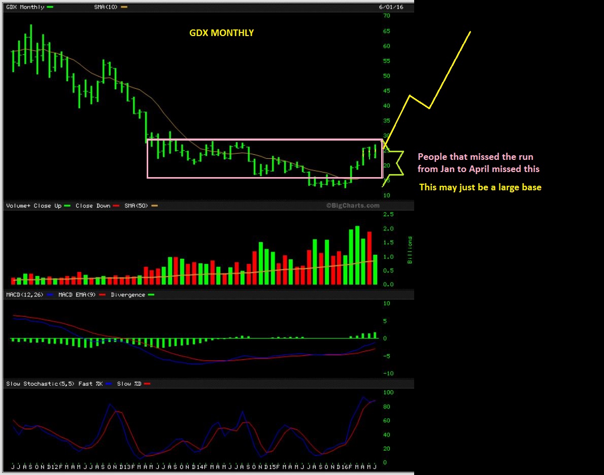 GDX MONTHLY – People that felt they missed the first run should look at the big picture. Yes, many Miners doubled, tripled, and even quadrupled, but there is more upside to make some nice gains in my opinion.