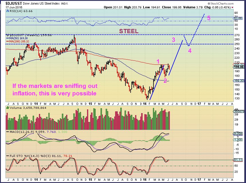 I had pointed out STEEL on June 2 as bullishly setting up. ‘3’ could be resistance, but I expected at least a run to ‘5’. Lets say the target is $235 to $240 minimum.