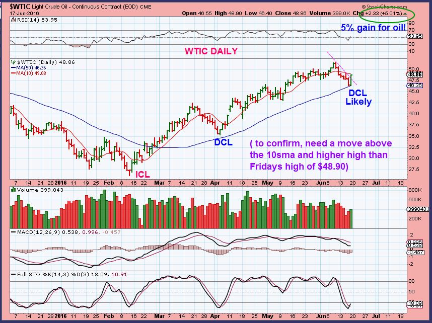 WTIC – I have been expecting a Daily Cycle low – it is overdue, and I think we have one in place. Oil shot up over 5% right off of the 50sma! That just feels too perfect, but cycle timing wise, we are due. Energy stocks should become bullish.