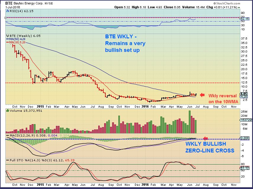 BTE WKLY – Weekly reversal on the 10MA- I’ve pointed out this stock & this base for months.
