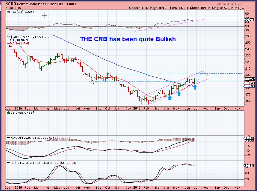 CRB WKLY – The CRB is bullish too and looks like it is going higher. This is another reason why I think Oil will go higher from here.