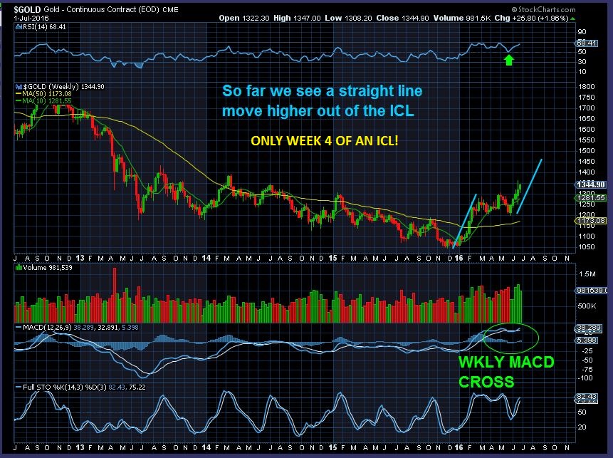 GOLD WKLY – 5 weeks green since the ICL.  It is similar to the first run where many waited for the dip and missed the move. There WERE intra-day pullbacks, but then it just popped higher because surprises were to the upside in this break from the base.