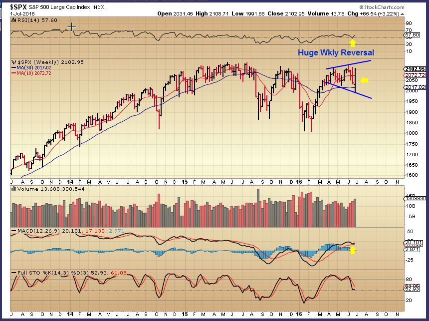 SPX WKLY –  Friday ended the week with a bullish looking reversal on the weekly chart. This is looking like it wants to break out to new highs ( May 2015 was the last peak).