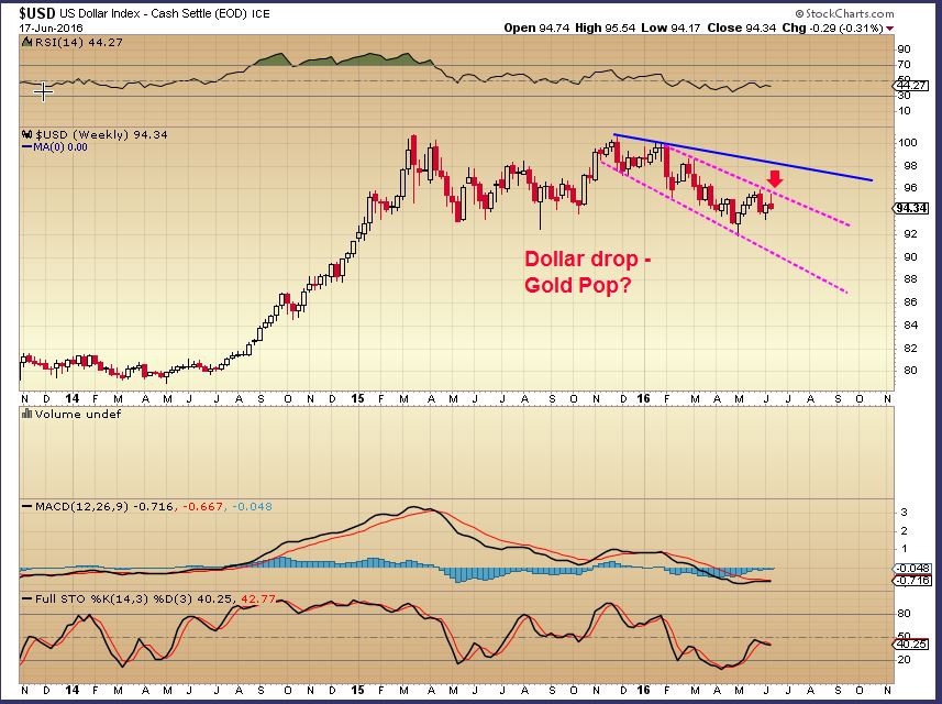And projecting for the bigger picture from this Mid June chart. A drop at that magenta line or a Possible pop would lead to the blue line. We just hit the blue line & dropped.