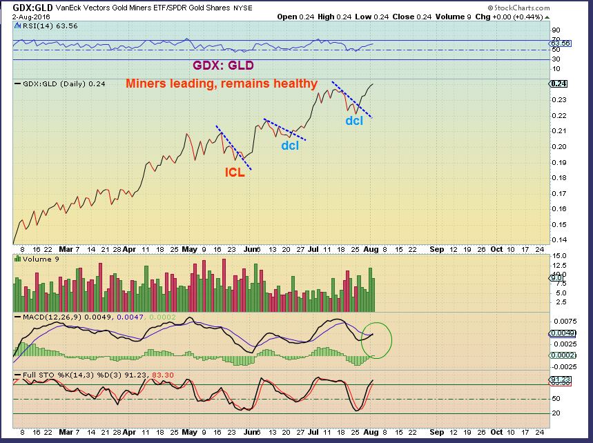 GDX:GLD – So miners are still leading the Metal here, this remains a bullish set up.