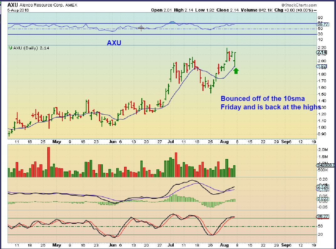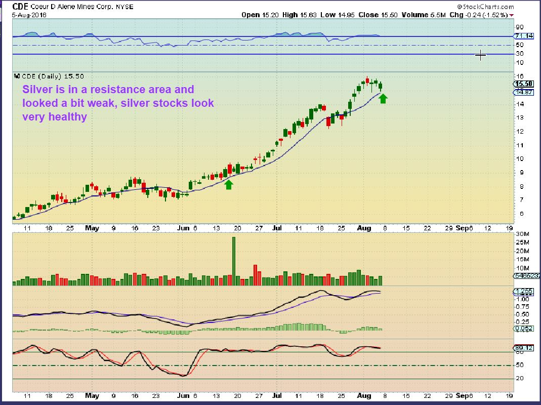 CDE – Though silver looks weakish, a few silver stocks climbed right back after the drop Friday as shown below.