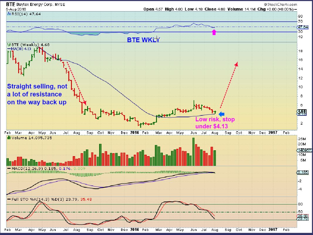 BTE WKLY – Once this gets going, I dont see a lot of resistance. I took a position in BTE last week, even though I am jumping the gun without solid confirmation and follow through that Oil has put in an ICL.