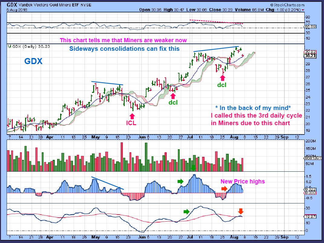 GDX – This could be a 1/2 cycle low type of a drop. If so, I would think that this chart needs to stop dropping and  give us some sideways movement to repair the divergence.