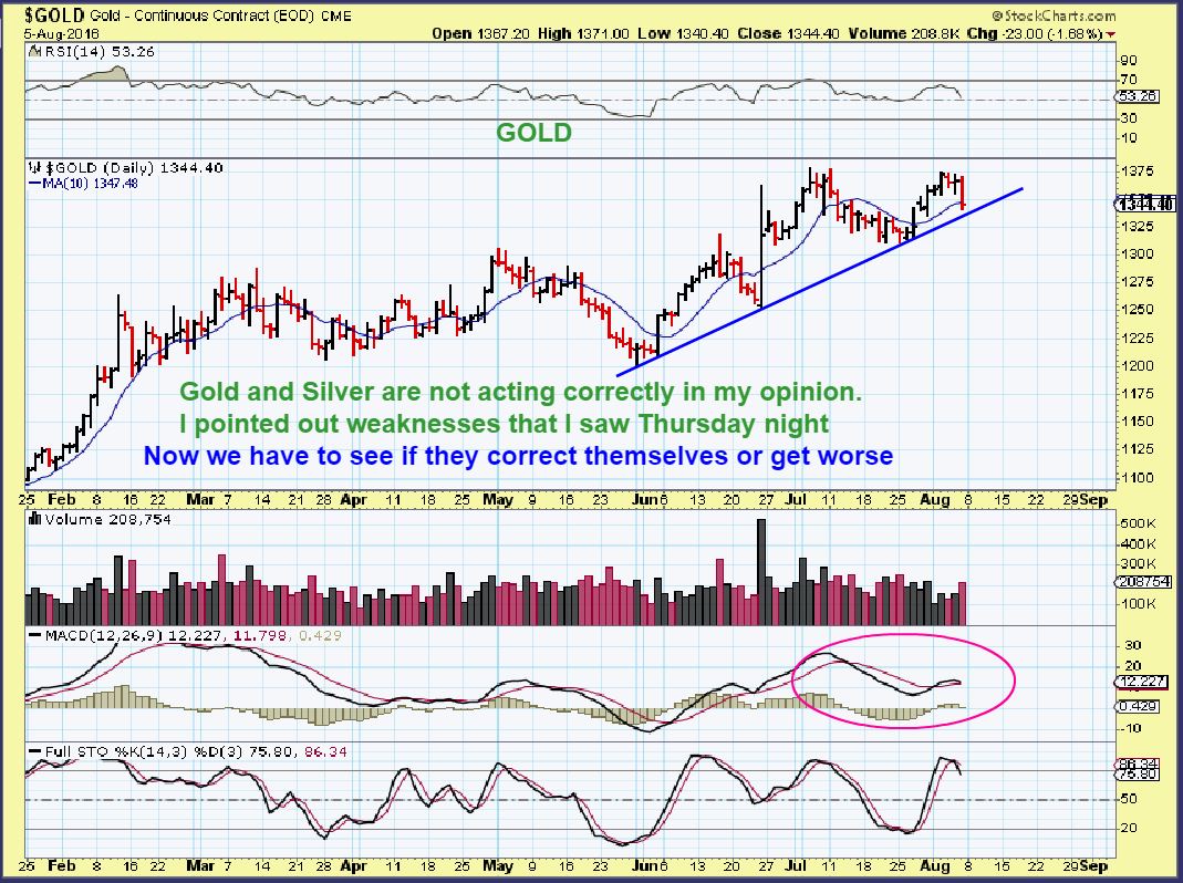 GOLD – This wasn’t looking strong and the drop Friday was the result. Now it has to hold up or else it may start to give up important support.