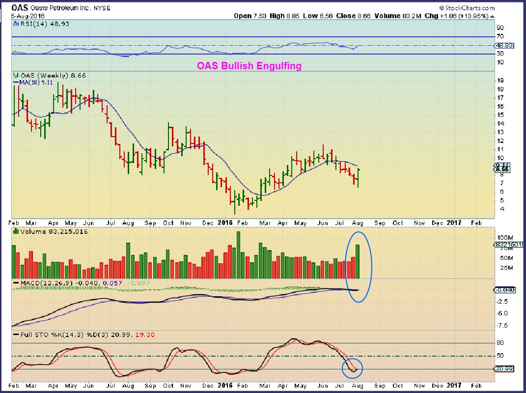 OAS – The weekly is just getting going. You could even buy it here, this will likely double. Big weekly reversal, higher low.