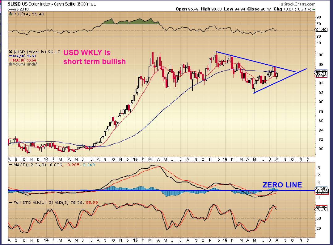 USD WKLY – This looks bullish, at least for the short term. We just saw a POP in the USD on the jobs report, and a drop by Gold &  Silver.  If the dollar is to make a quick run, will metals have a quick drop? We’ll keep that in mind, and discuss precious metals later in this report.