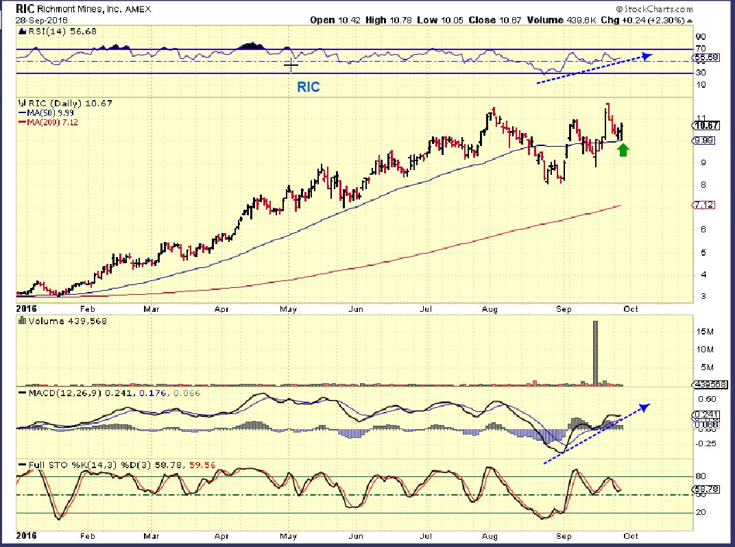 RIC – This re-gained the 50sma last week and held up on it this week. I think that we are going to see some Miners being accumulated after that steep August sell off . This is why a ‘core’ holding pays off. In bull markets, we do see surprises to the upside and this is quite surprising.