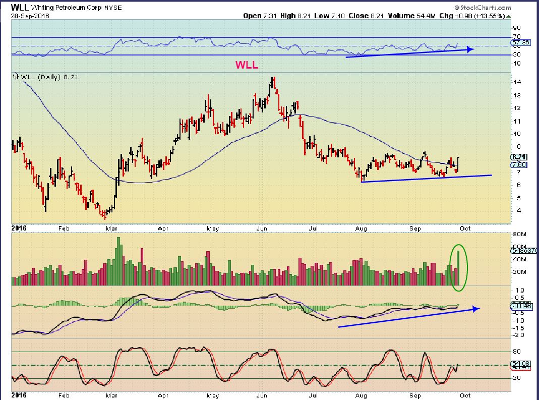 WLL – Breaking back above the 50sma with strong volume.