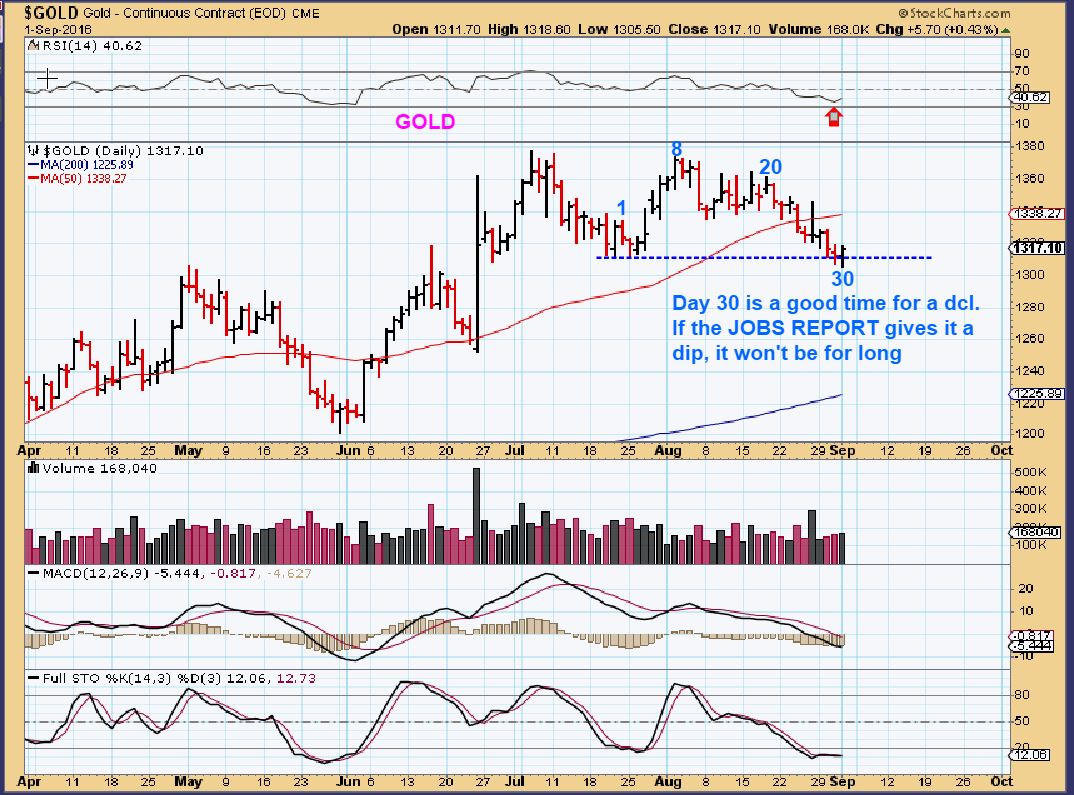 Lets just say that the dollar is playing out as weak here and going to roll over.  let me tell you the “How” and “Why” that you will hear.  If we get a STRONG JOBS REPORT & Dollar drops, news reports will be –  “Fear that the economy is good and a rate hike is expected is what dropped the USD today”. If the JOBS Number is weak and the USD drops,  you’d hear , “The Jobs report was disappointing, and the USD is selling off as a result, with this sign of a weak economy.”