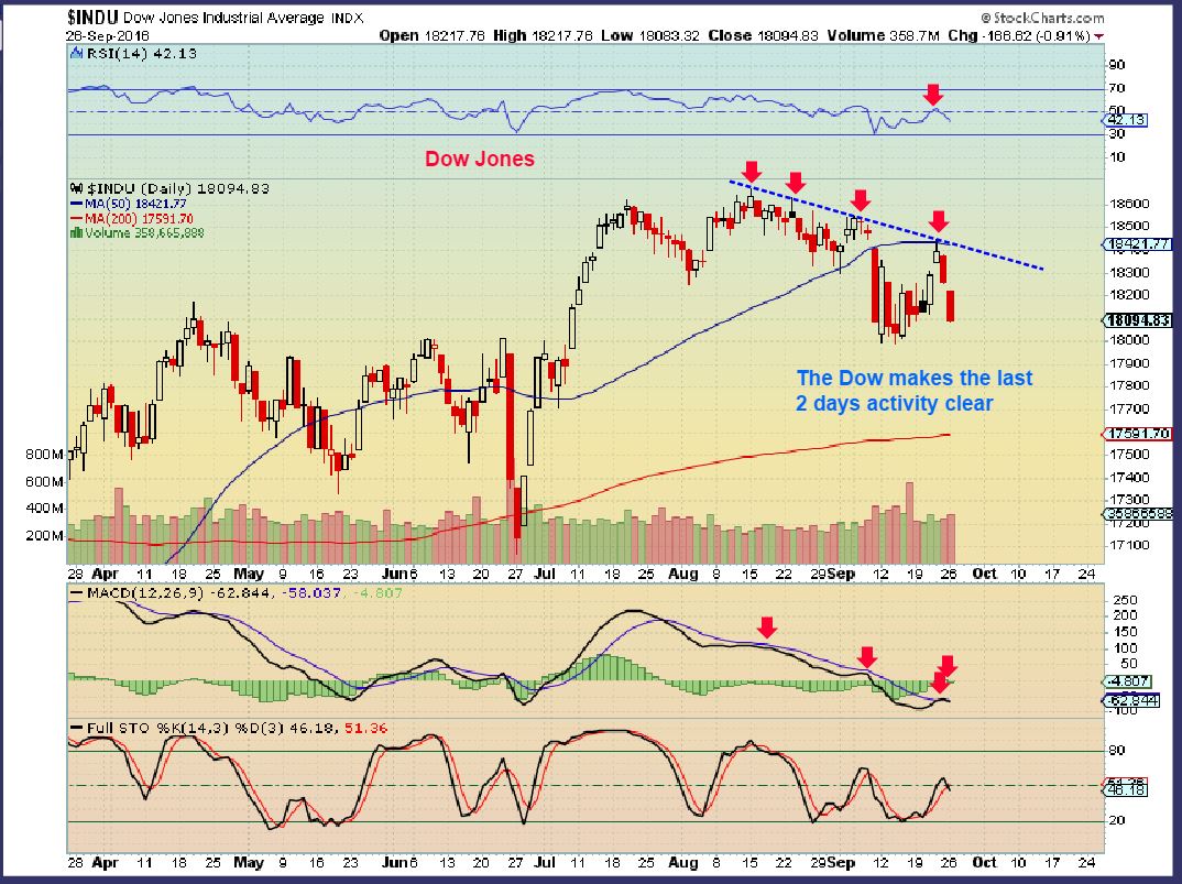 The DJIA and NYA and a few other areas really show the weakness that has come about from just the last 2 days of market action.