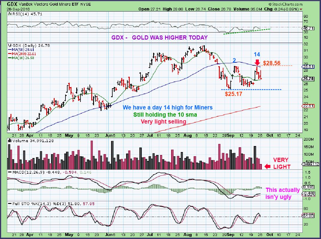 As for me , I see the GDX filled the Sept 20 gap on light volume, and the USD move higher doesn’t quite look real to me