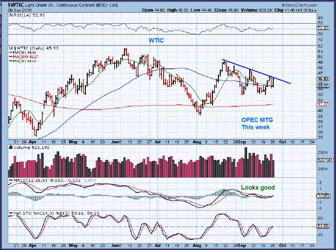 WTIC – Oil looked excellent today, up 3.26% . Fridays big drop was pretty much undone, Oil remains above the 50sma, but…
