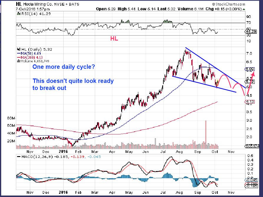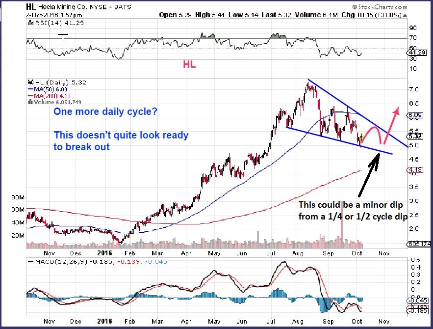 When the ICL is in place, I actually think many of these miners could move 50-100% higher again, so it is worth the risk to take a position either way. Now lets look at charts showing how some Miners are setting up to a bullish look, and I will include HL in that mix.