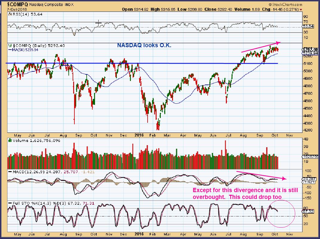 NASDAQ –  The NASDAQ broke out and was holding up pretty good, but the MACD divergence is showing a lack of strength and it is overbought a bit. This actually looks more like it wants to drop.