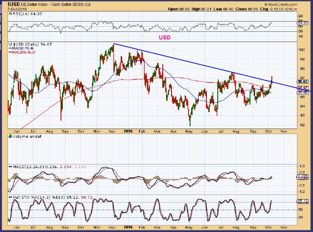 TRX OCT 7 –  So far price has held that support for 4 days at 65 cents, while Gold & Miners sold off.