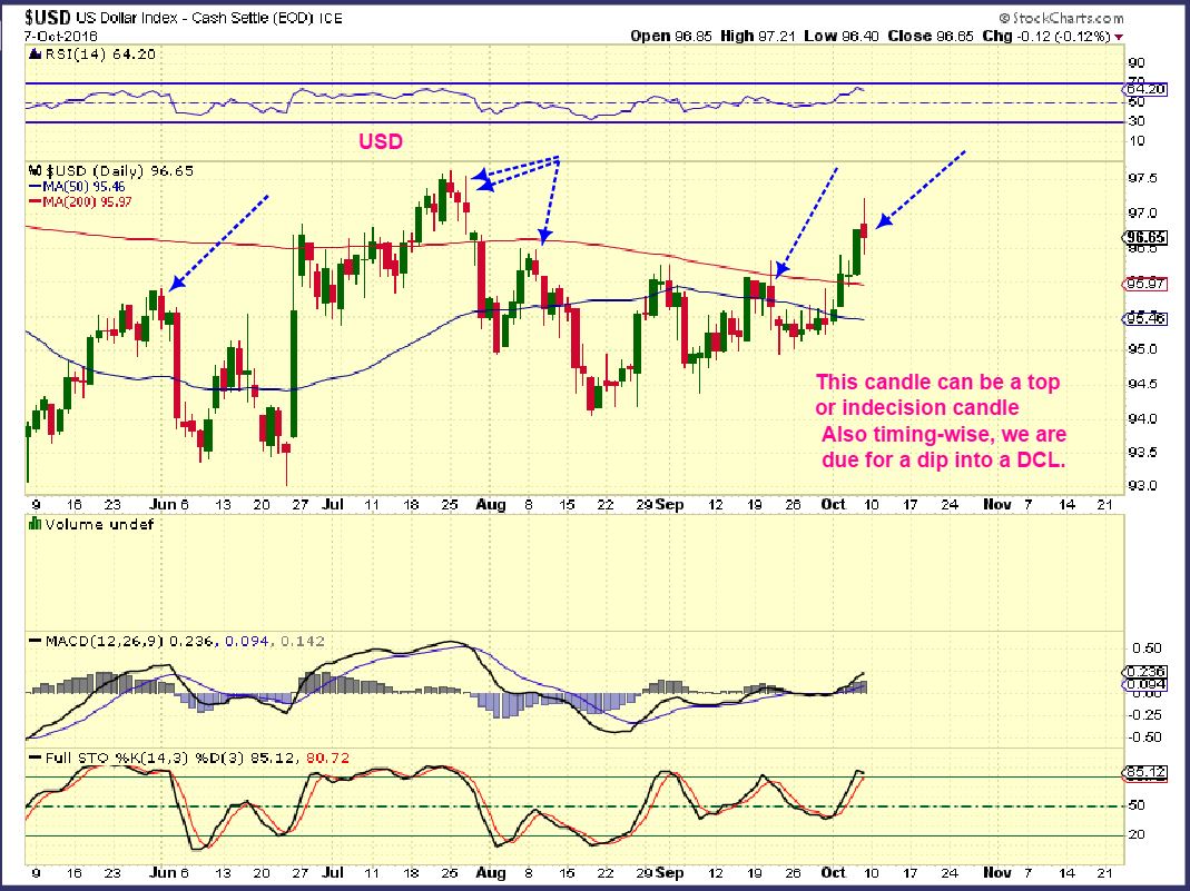 USD – The USD broke out and reversed lower Friday, so it could be a false break out to draw in long positions. It is actually due to drop into a dcl ( Daily Cycle Low), and a drop by the dollar would help Gold.