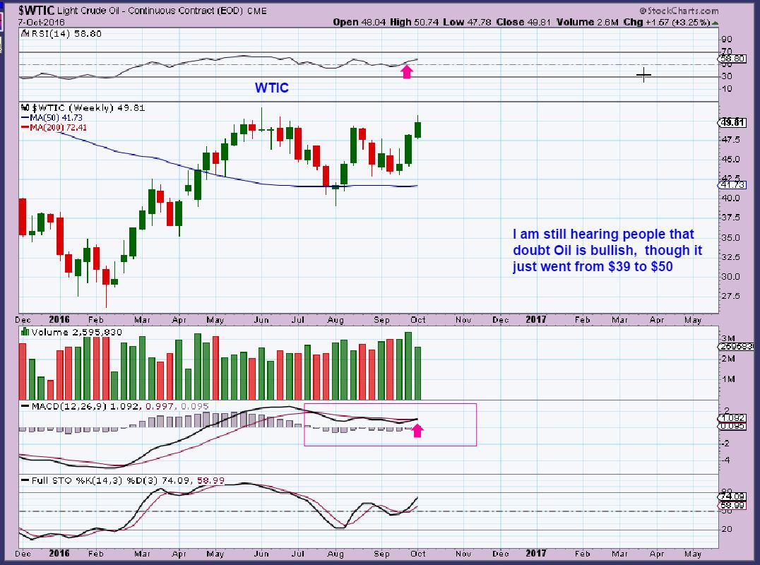 WTIC WKLY–  This is a bullish looking chart, yet I still hear quite a bot of bearish talk.