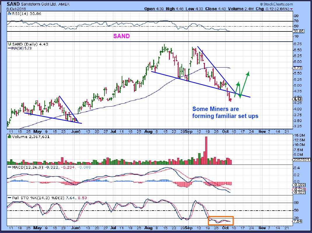 We are still waiting and we have been very patient-  but I am thinking that if we are still in a bull market, the selling is about exhausted and a rally in Miners is very close ( or here).   Patience has paid off. JNUG was $20 last week, people in blogs that I looked at were buying it without stops, today it was under $10. Many in the “buy the dips” group have experienced a lot of pain by not waiting for the right timing.   We have done very well here.   In recent reports I have been discussing how TRX and a few others are no longer selling off, this is encouraging so I added on little to my core on Thursday, and I may be buying small positions Friday as an active trader, depending on what I see. For example, with almost 8 straight days of selling in Gold, GPL and CDE are also holding up rather nicely. Lets see what we get with the jobs report Friday.