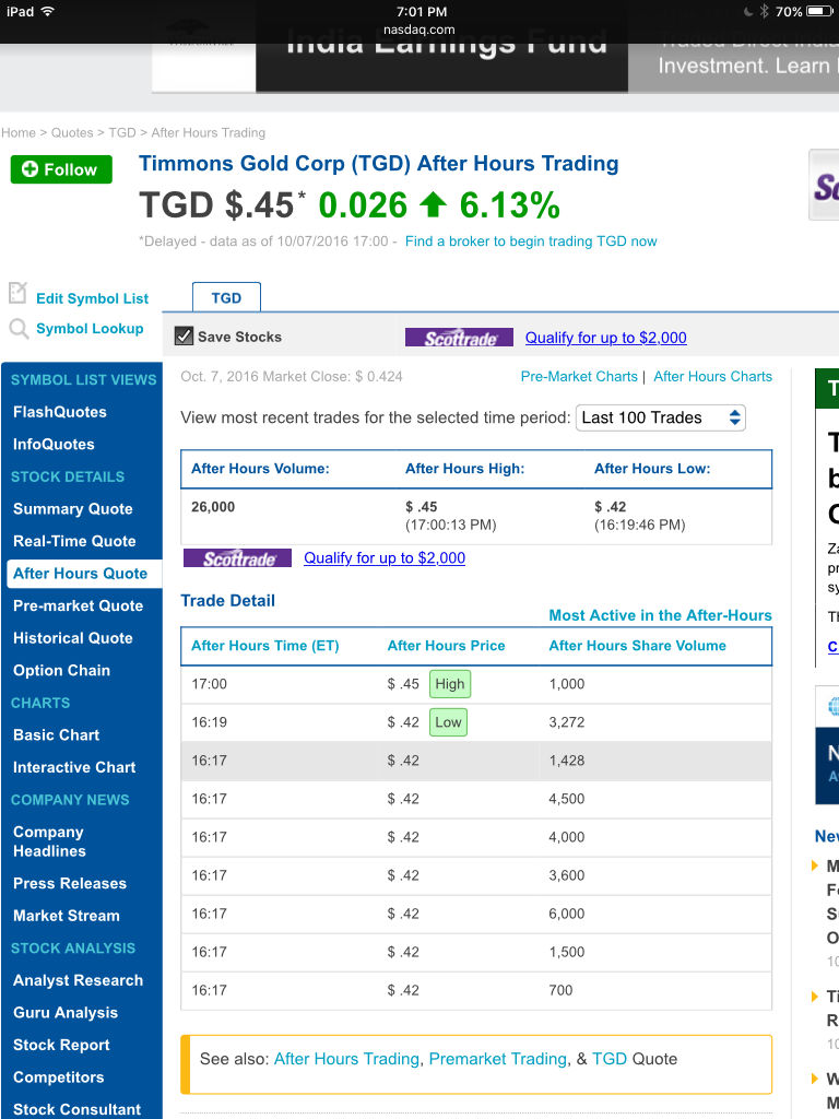 I was looking at TGD the other day and I noticed that it was holding up above the Sept lows and with the high volume, they could not drop it down, in fact, it closed green.