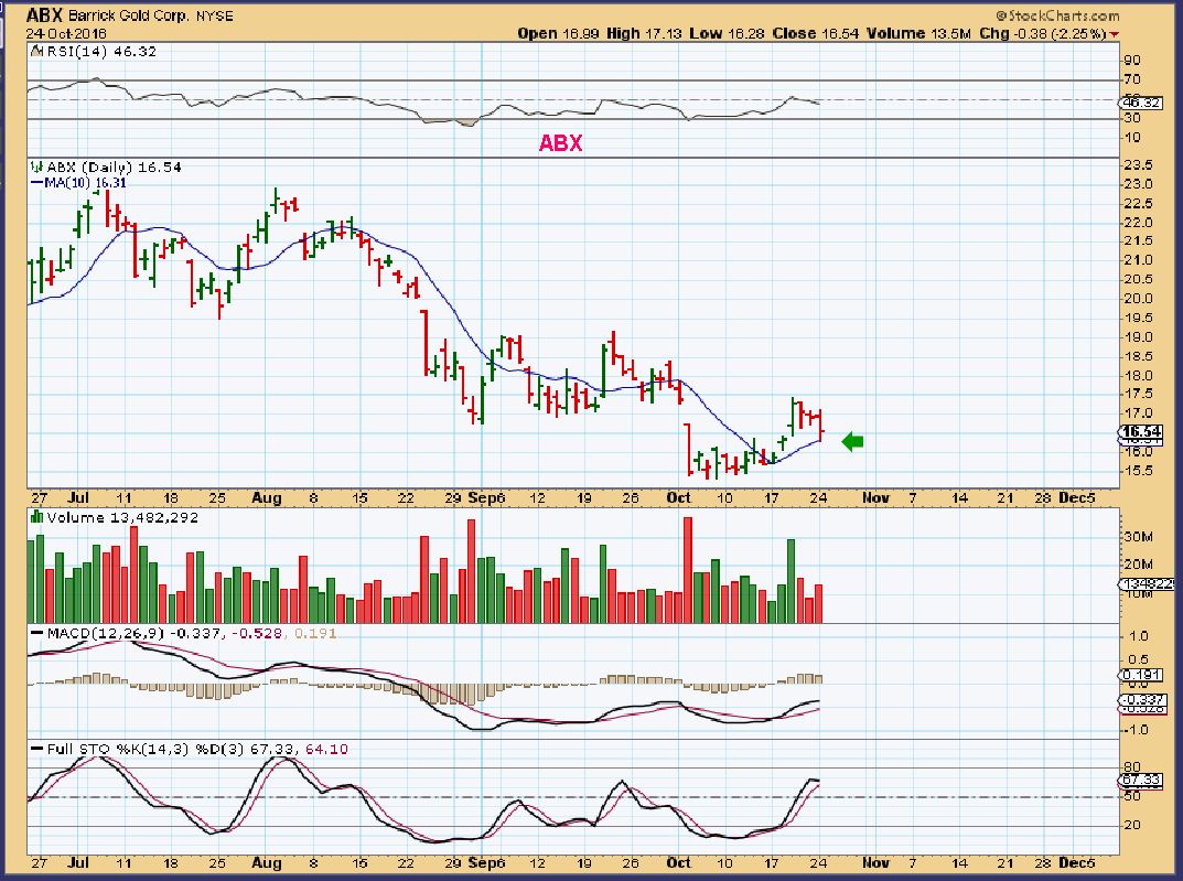 ABX –  Tagged the 10sma and re-gained 26 cents to the close. If I drew a trend line, this has not broken out yet.