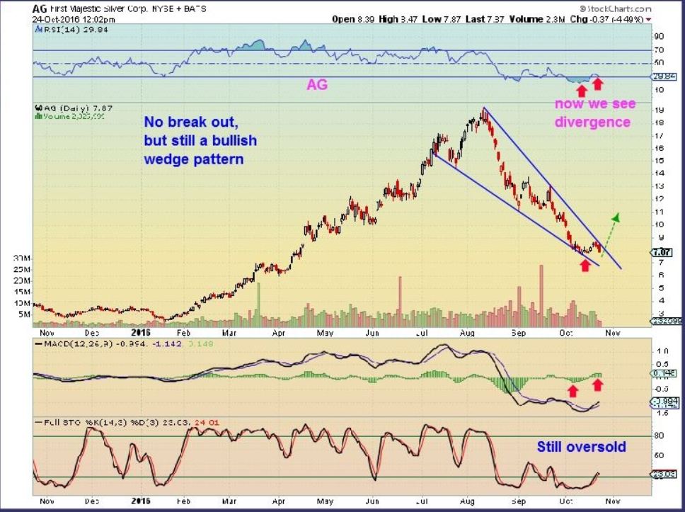 I own AG and it went right back to where I bought it today, under $8. I took this chart at noon time when it was $7.87 and yes, that stinks. It closed back above $8, but you can see that it is at the recent lows.  I still see it as a bullish set up, but yes, they can try your patience.
