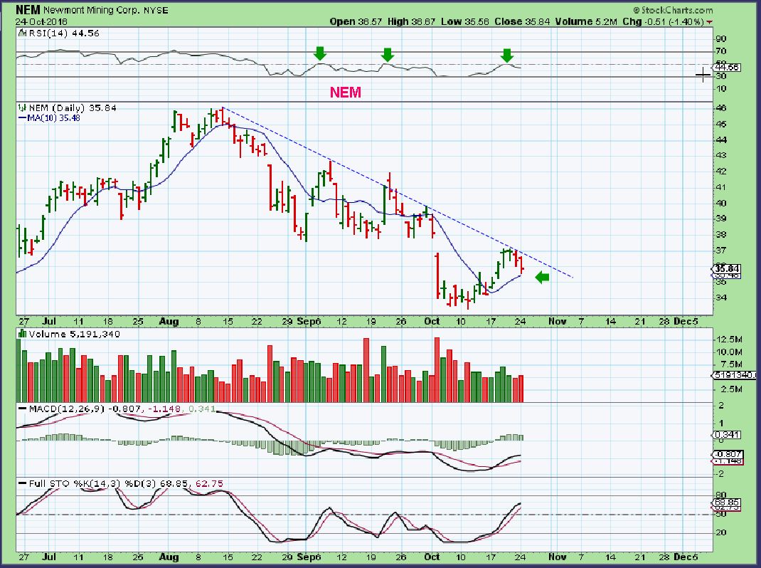 NEM – NEM gained 28 cents off of its lows after testing the 10sma area. Also looking for a break out soon.