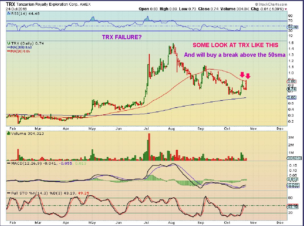 TRX – Some would say,  “Why buy this, it looks like a repeat failure”.   It is, but I think that it will break out when it builds up steam, plus…