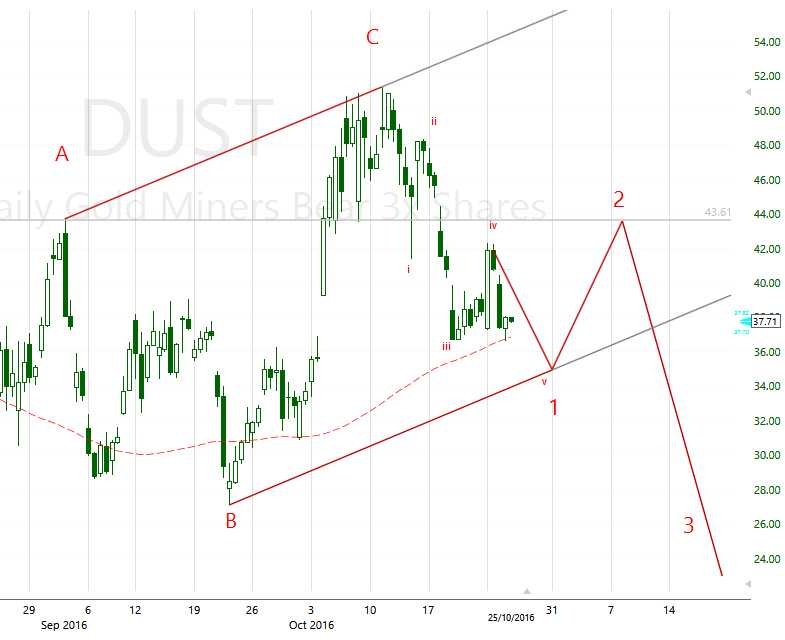 WE DID EXACTLY THAT, and yet many people wanted to sell.   This is acting fine so far.  Could this break down?  Of course anything can happen, but this is bullish with the Dollar rising day after day. GDX tagged the 10sma and bounced so far.