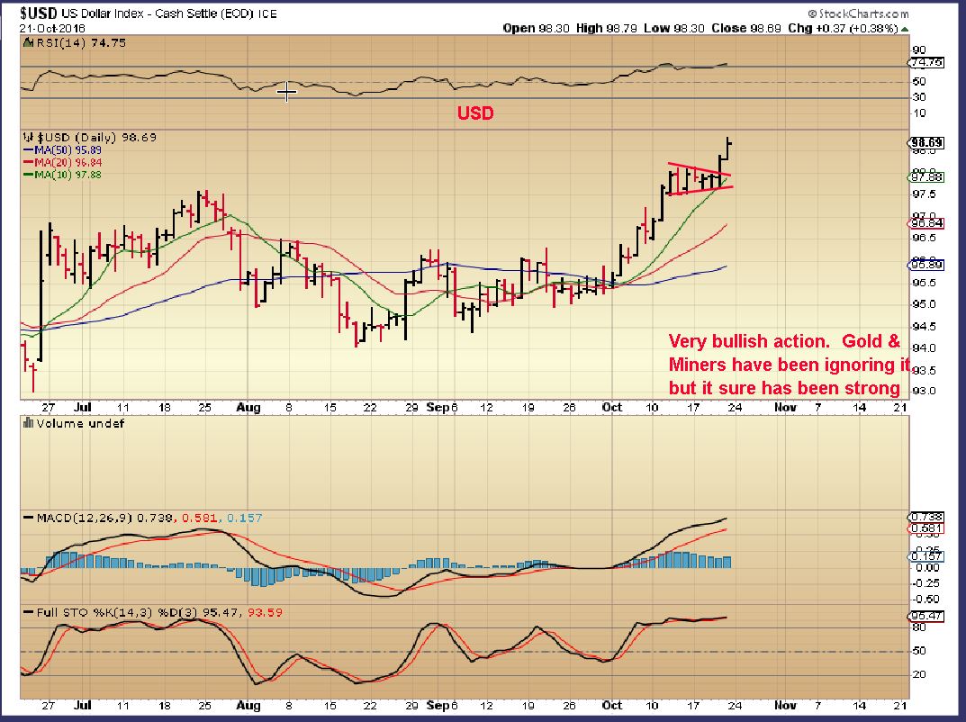 USD – The dollar broke out again and is moving higher ( Important to note that Gold is not being smashed down on this rally. I will discuss this later in the report too).