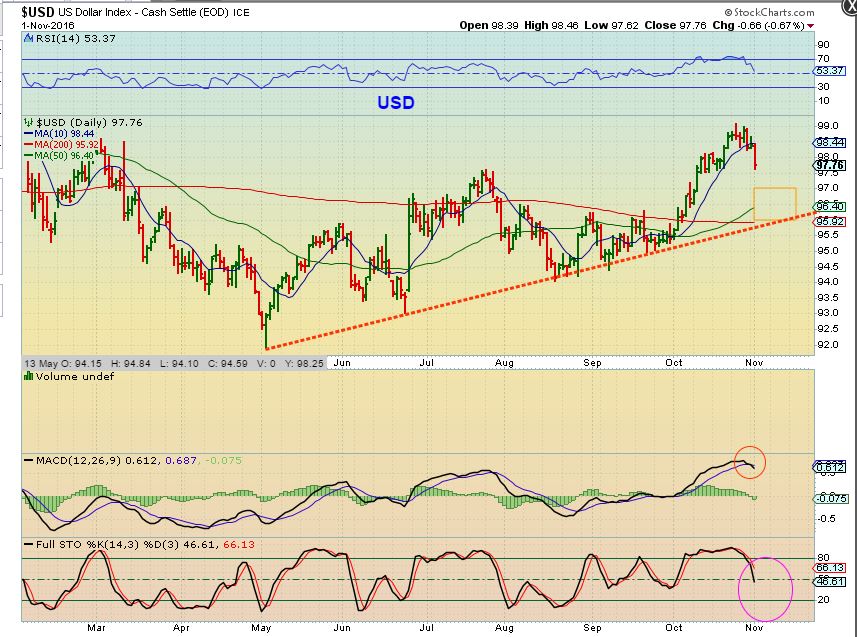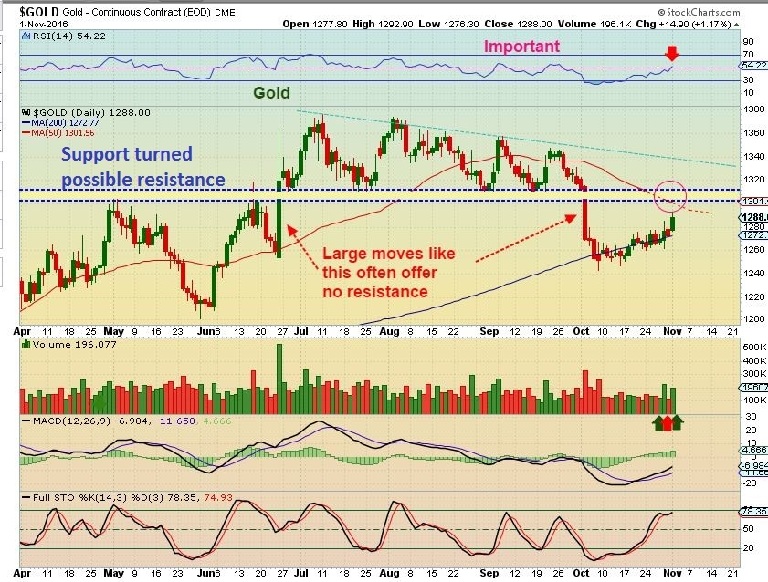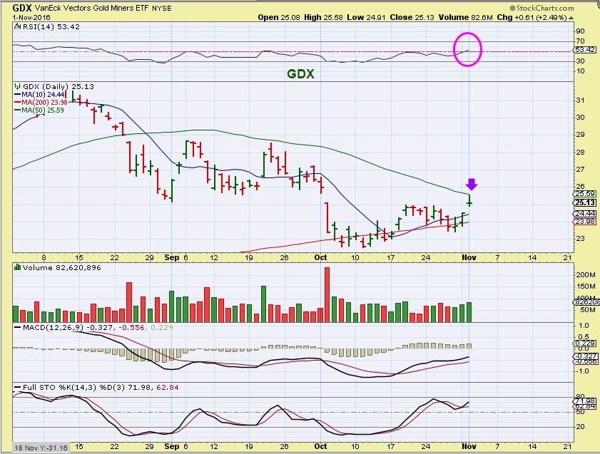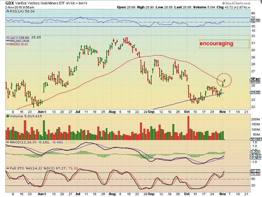 My EWT guy likes what he sees in gold/silver. So the shares are following the market not gold, at least today. If that is the case and H is elected, then the shares should rally which should give our shares a boost since gold is going up too. Nirvana. If Trump wins, stocks will tank and we HOPE that gold shares will then follow gold, not shares. I think I will ride my positions through the election.