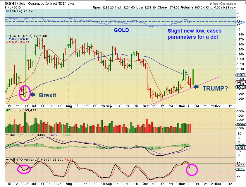 Jeez. I really don’t believe it. I’m not sure the markets can be calmed with this but we’ll see. I had a few sell orders on some gold stocks mainly to redistribute into other gold stocks but I cancelled the orders for now. Assuming Trump wins he isn’t even sworn in until January. What’s going to happen up to then? It sure will be interesting.