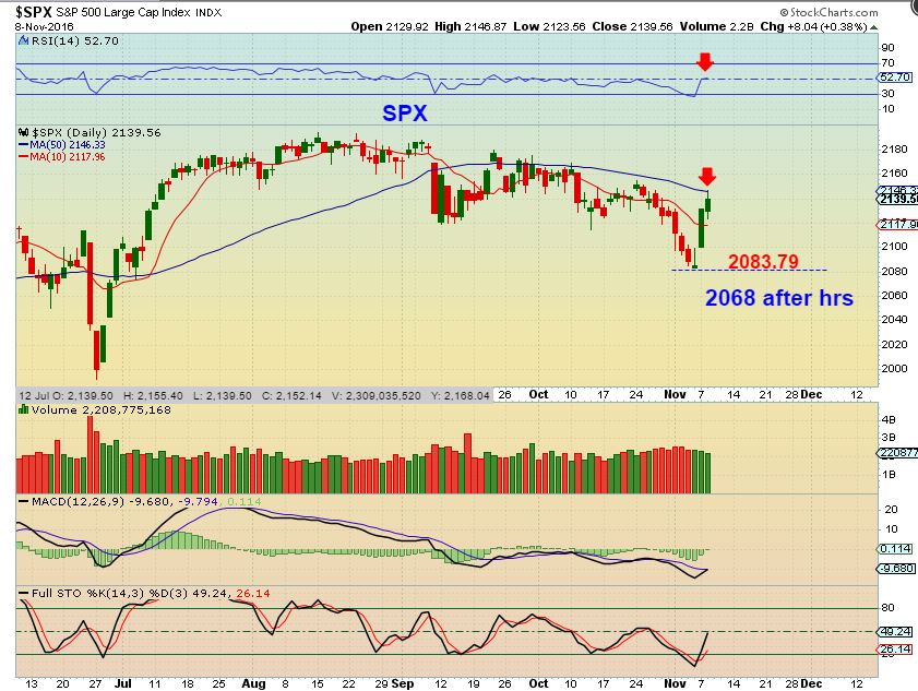 SO WEDNESDAY is going to be a day of emotions and whip saw with whatever the results turn out to be when all is said and done. It already has been in the futures. As I write, the above reactions are a result of Trump being ahead late in the Polls. In the Morning, this scene could be the same or different, but it is not likely to be calm yet. I am going to just watch how things play out, and if anything gets beyond my liking, I will step aside and allow whatever happens to happen. Honestly, at this time, the futures have moved strongly in our favor, since we focused on the ICL in Precious Metals.