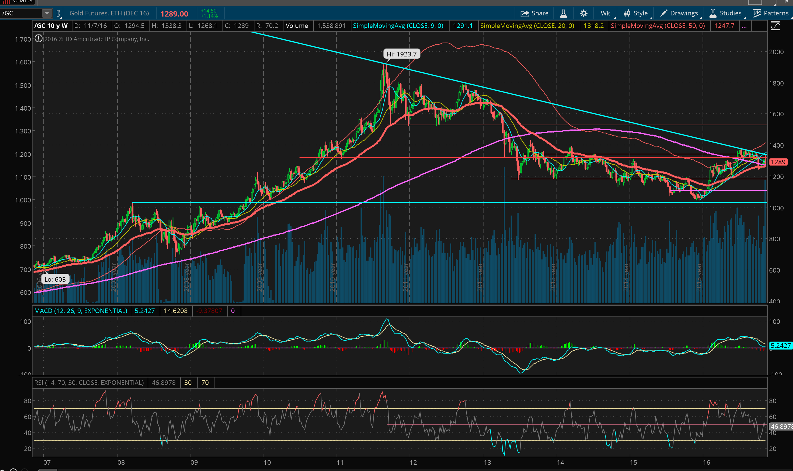 GOLD LIVE 11 P.M. Eastern time- It is looking like it is off to the races and will break the overhead trend line soon.