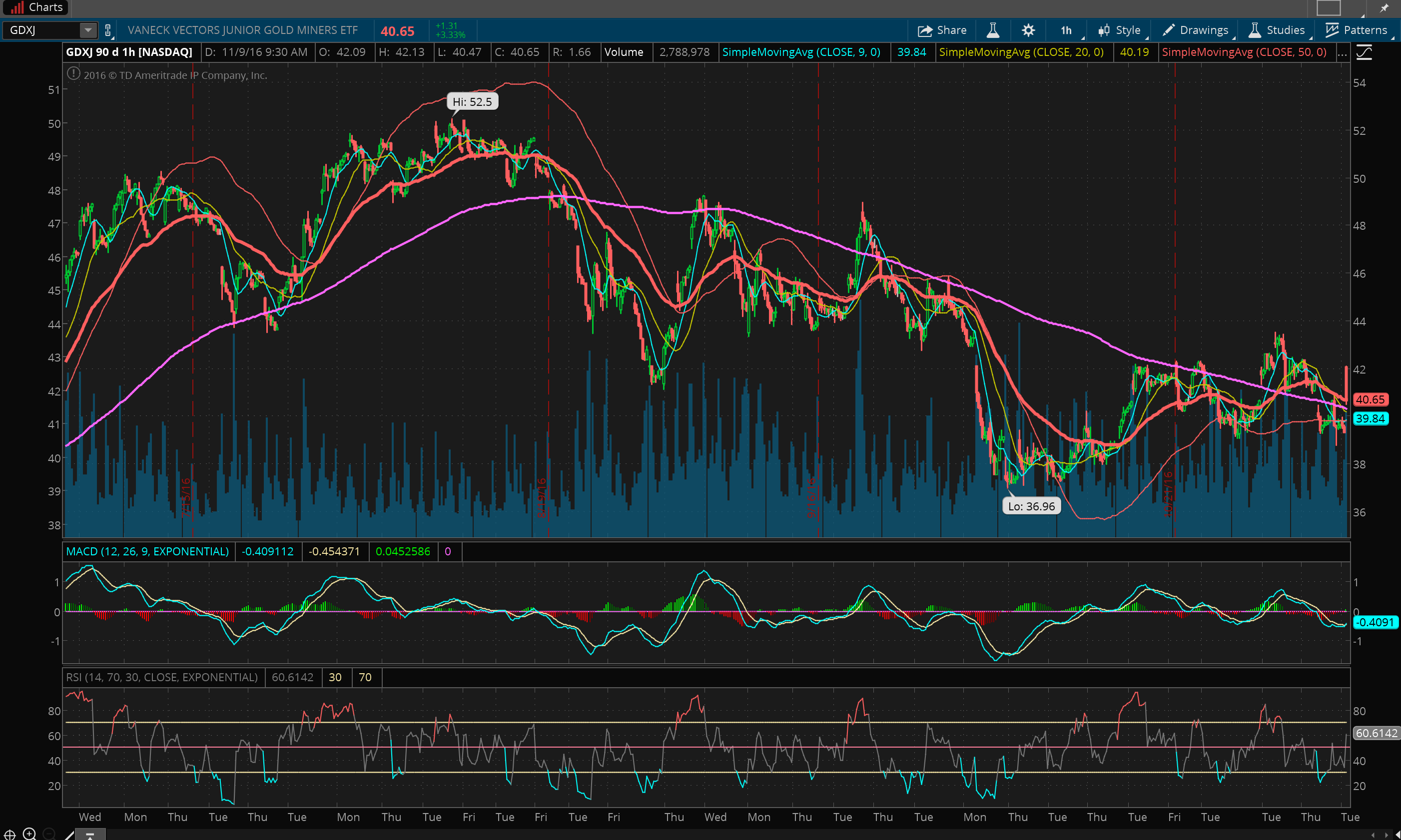 Seeing some ugly black candles here. Should GDX be acting like this if this is the beginning of a new daily cycle? AG looks great though.