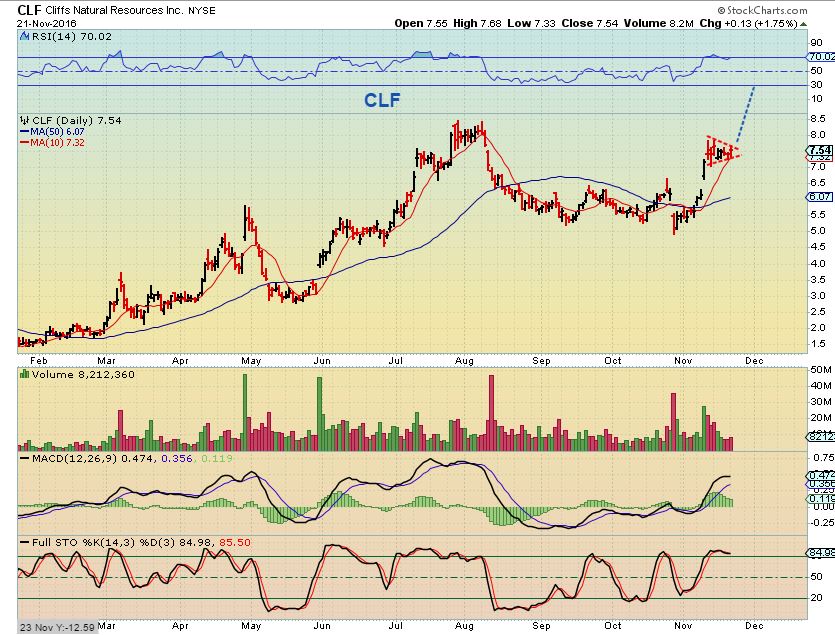 We do have some ‘longer term’ investors here, this may help you. The Steel, Aluminum, and Iron Ore stocks took off like rockets after the Trump election results, and many just wanted to get on board. I mentioned then that if you dont wait for a pullback, you risk buying near a temporary top and have to ride it down or get stopped out. Wait for the right time. The time looks right for longer term investors that may not mind riding the consolidations too.
