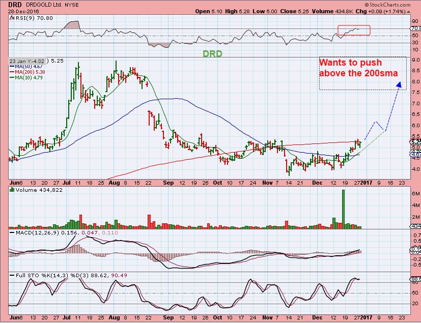 DRD – Pushing on the 200sma. It is an additional buy when it breaks over the 200sma if you ask me.