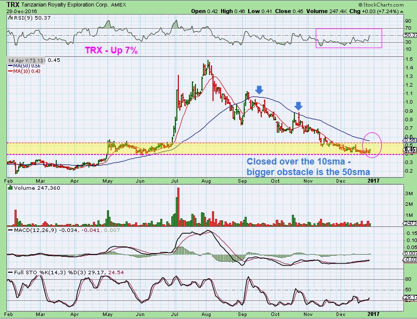 TRX – Yesterdays break above the 10 sma could be the start of a nice move