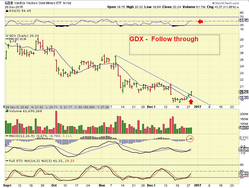 GDX – GDX closed above the 10msa Tuesday and had follow through Wednesday.