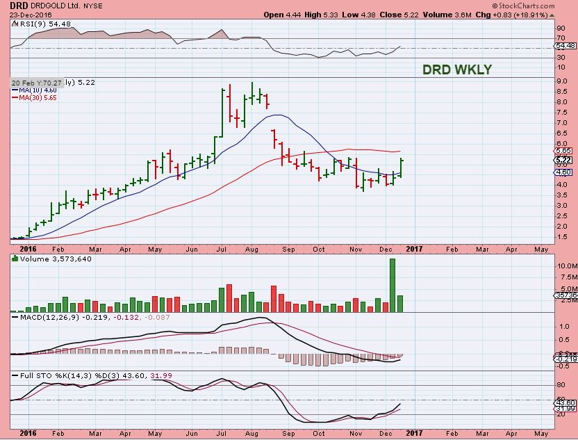 I’ve been showing the weekly chart as bullish for DRD & GPL for a couple of weeks. This looks like it wants to form a weekly cup.