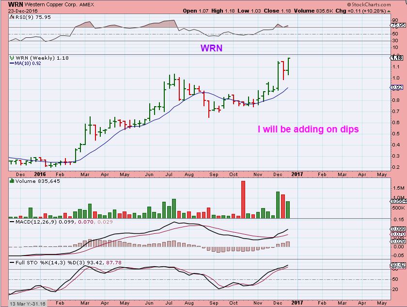 WRN WEEKLY – This was also a weekly cup that I highlighted last week. Just so you know how these can play out over time, this hit $1.80 on the next trading day!