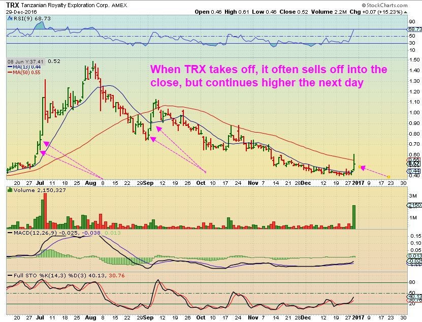 TRX – Yesterdays break above the 10 sma could be the start of a nice move