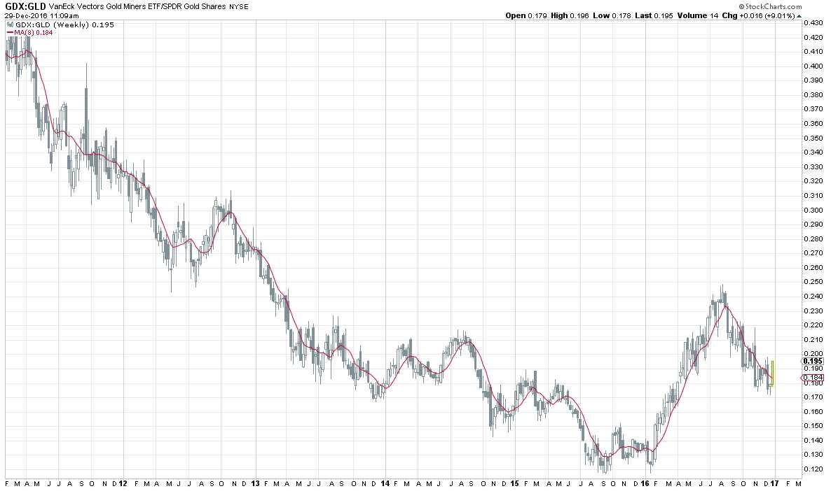Johnny, scroll down to see the chart that SoG posted (I copied it below for you). There he showed how GDX is now relatively stronger than GLD which bodes well for us.