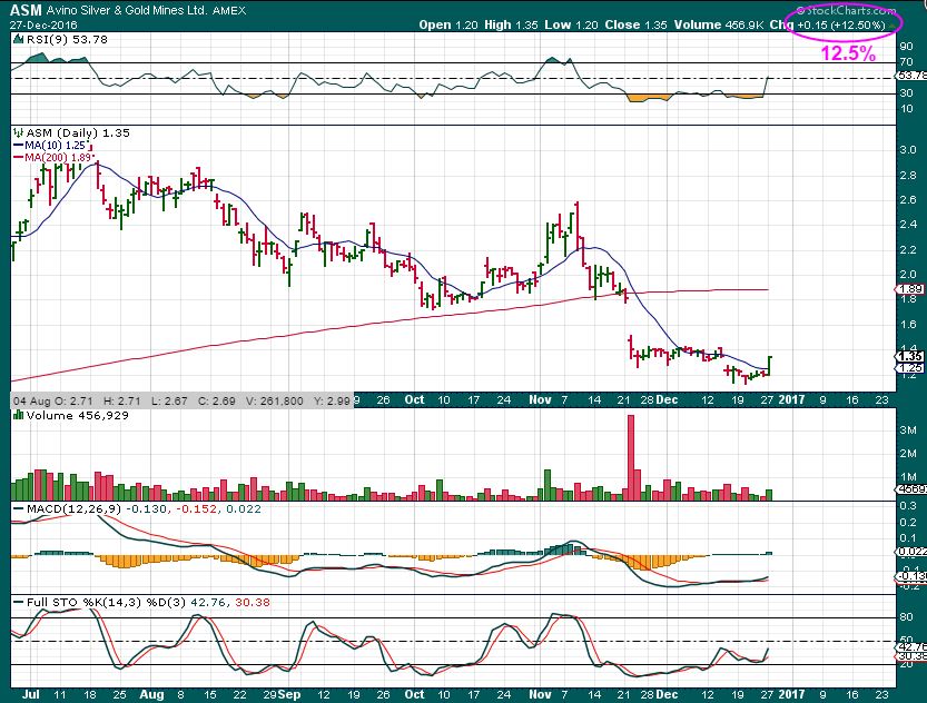 ASM – We did see other Miners pop up off of their lows / bases. This could at least run to the 200 sma for starters, similar to the Oct / Nov pop.