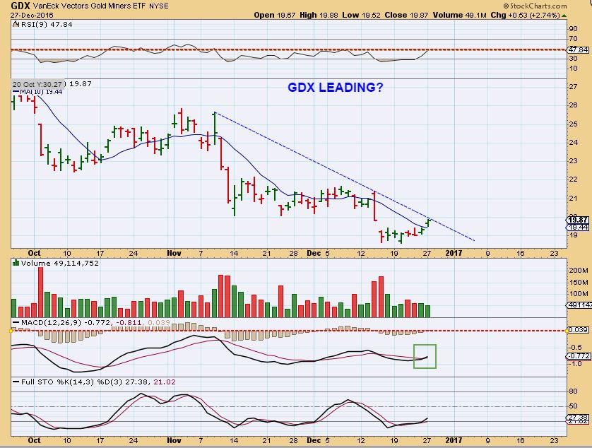 GDX – GDX may be leading the way, breaking above and closing above the 50sma. This is an acceptable buy signal at this point for Miners, if someone is waiting to enter the Miners.  It was not extremely convincing that this will push a lot higher yet.  Let’s see what happens if & when Gold finally moves higher.